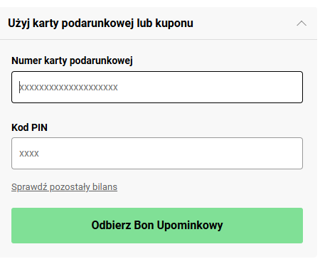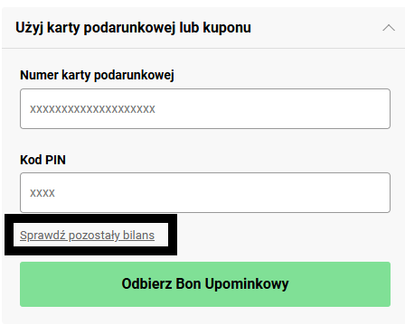 Jeśli korzystasz z karty podarunkowej lub eVouchera i nie wydasz całej kwoty, pozostałe saldo zostanie zapisane na tej karcie podarunkowej lub eVoucherze.
