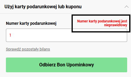 Nie można kupować kart podarunkowych ani eVoucherów przy użyciu kart podarunkowych lub eVoucherów jako opcji płatności.